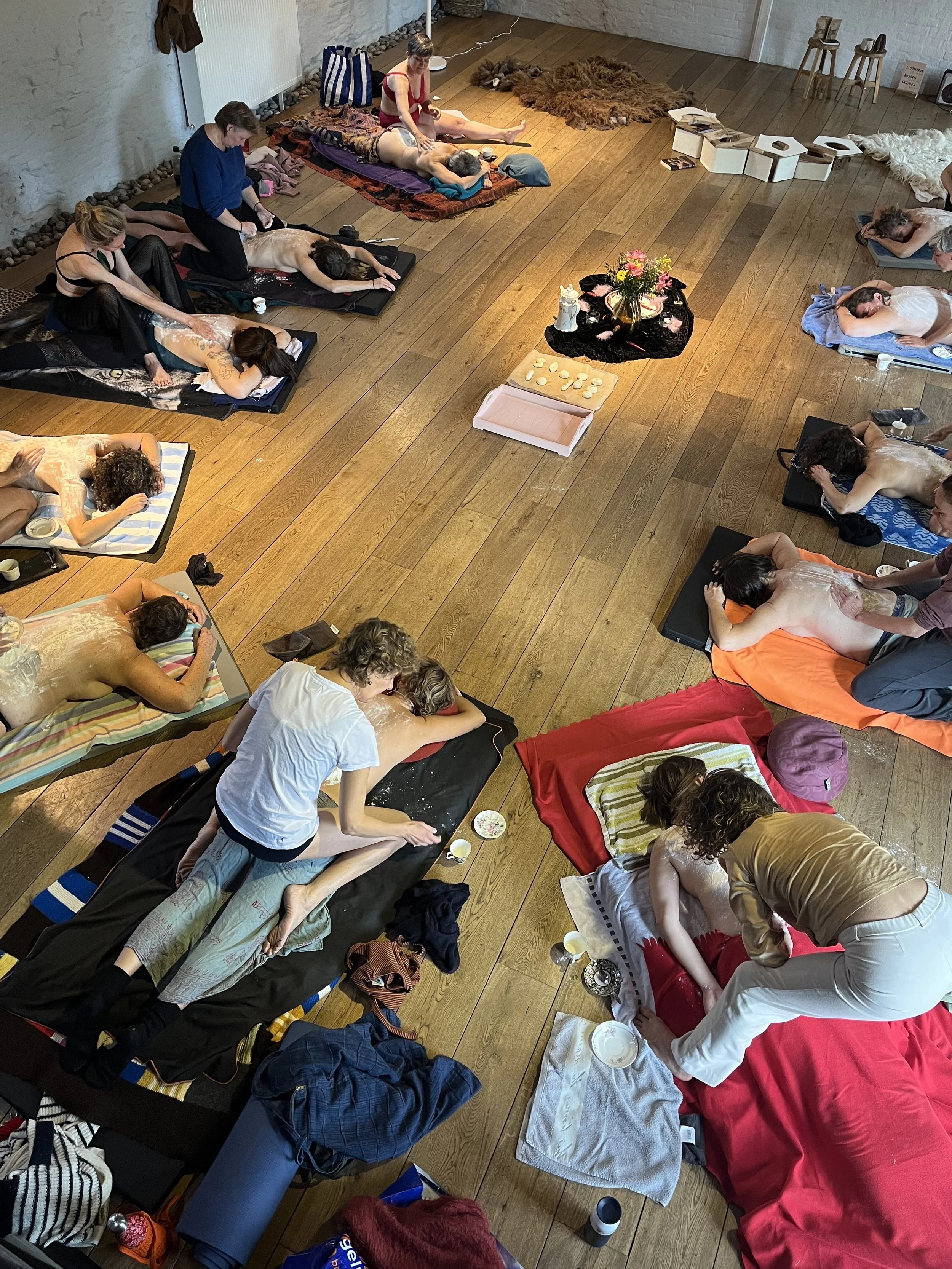 Deelnemers zijn (deels) ontbloot tijdens de workshop.